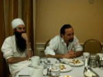 Lunch time is spent wandering the Vendors Hall, overspending at Nataraj Books and yet feeling I am leaving empty handed. And lo & behold! coming across the Hanuman Chaleesa as a red wall hanging en-scribed in gold thread! Guru Ravi Kaur and her sister have no difficulty getting me to open my pocketbook once again and graciously agree to “frame” it with my rudrakshas!