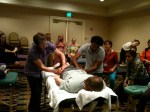 Then on to the only Practicum I am signed up for: The Dance Of Shiva: Using The Senses as the Gateway for True Healing. Thomas Mueller requests my participation for the demonstration of abhyanga and so I get to revel in one of my favorite pastimes: getting an Ayurvedic oil massage! Jai Shri Lakshmi Ma! Later, we al practice on each other but with no oils. It is a wonderful workshop and I learn a new mudra and a new vinyasa: Shiva’s dance as it came to Mr. Mueller and I must say, I thoroughly enjoy it!