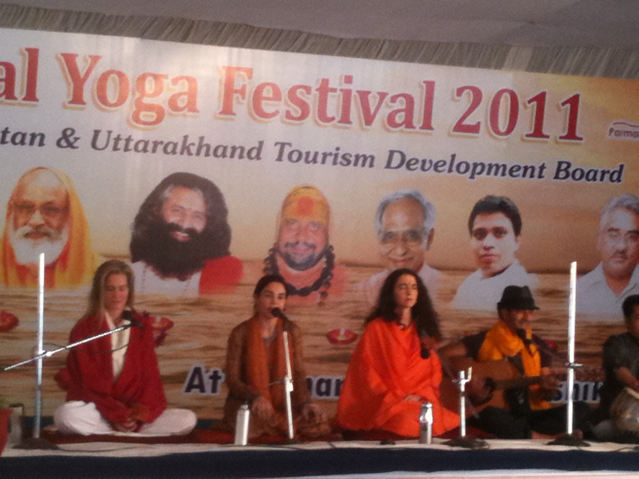 I am here for the International Yoga Festival being held at Parmath Niketan. After greeting old friends at Parmath I take Shiva Rea’s class. It is surreal to meet her here as I am at the Festival accompanying my friend Mini, purely on a lark. I later take Marla Apt’s signature Iyengar session and it is good to see her too.