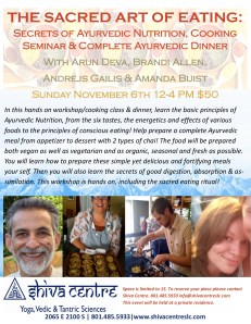 Sacred Art Of Eating: Secrets of Ayurvedic Nutrition, Cooking Seminar & Complete Ayurvedic Dinner