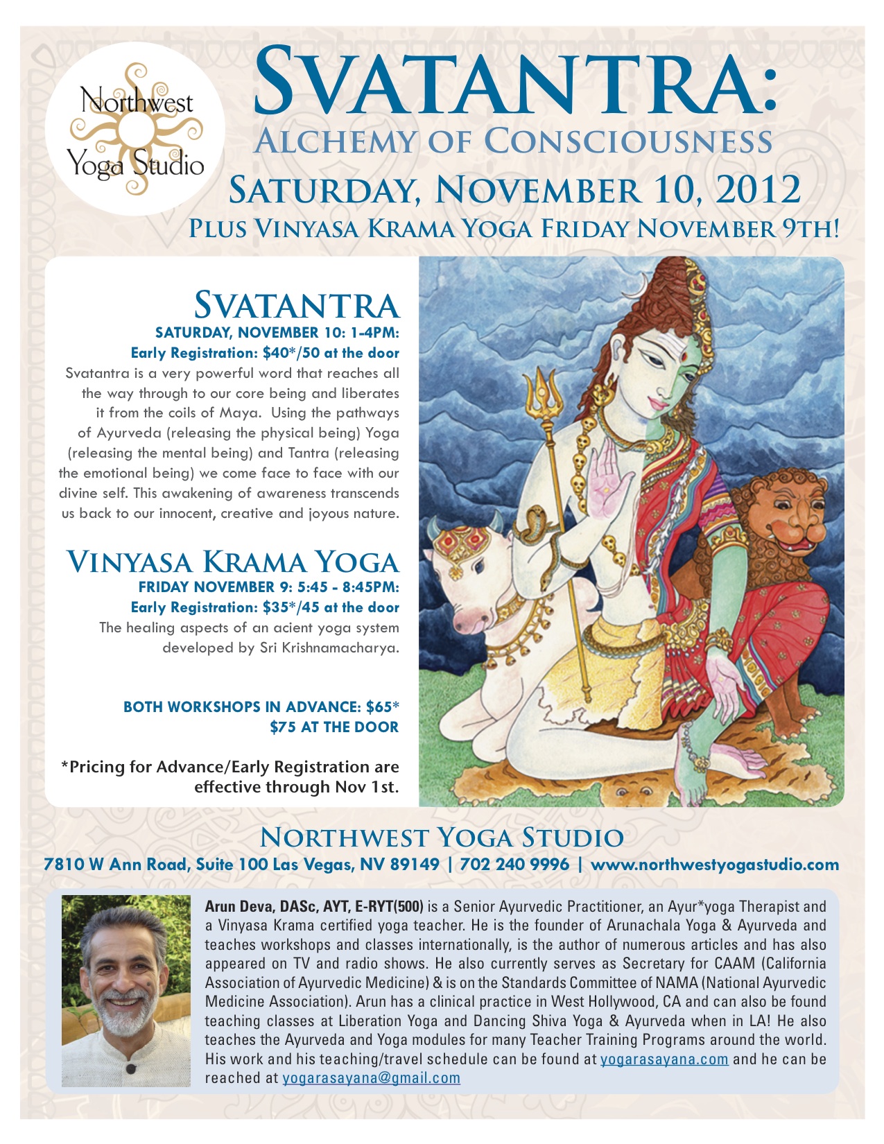 It has been a busy spring. Among trips to Salt Lake City, Las Vegas, Grass Valley and Encinitas was a lot of private reflection time. I have been contemplating both yoga and my yoga. As an Ayurvedic Practitioner I will have a particular view of yoga when it comes to healing. And what this view is now showing me is that yoga is the single most powerful healing tool that Ayurveda can offer. Needless to say, yoga based on the principles of Ayurveda. What I am discovering is that it has never been any other way. They are inseparable. They are Vedic knowledge specialized into sister sciences. For some years now, I have been blessed to share the wisdom of Ayurveda with yogin`s and yoga teacher trainees. Most blessed also to share Ayurveda with the awesome Larry Payne’s Yoga Therapy Rx Program at LMU. I continue to do so.